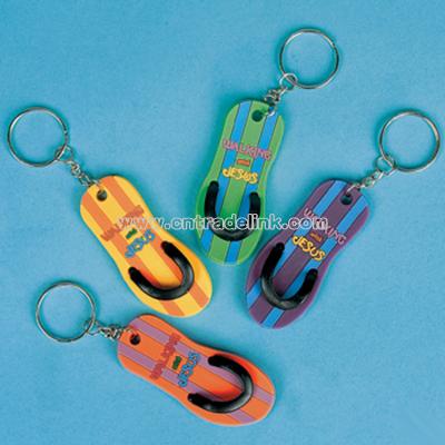 “Walking With Jesus” Flip Flop Key Chains. In a fun flip flop shape, our “Walking With Jesus” key chains will keep keys handy! These striped rubber key chains make great gifts. 2 1/2"