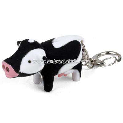 Wrap your keys on our Cow LED Keychain and you'll never be lost. Easy to find keychain will moo when squeezed so it's easy to find when digging through the bag for your keys. The cow's snout also has two super bright LED lights which will light up any dark corner or front door. Put your trust in the cow keychain, she just wants to help! Rubberized coating, LED lighting, squeeze for moo sound. Measurements: 2.25” x 1.25” x 1.5"