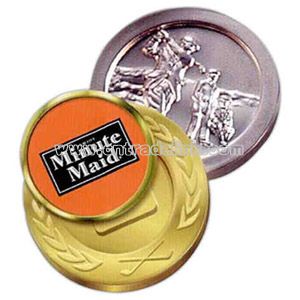 Pocket marker. Custom coin medallion with 1" removable magnetic marker. Personalize flat marker. Reverse side features a classic golf scene making this golf item a true keepsake. 1.5" diameter. Color: Antique Brass, Antique Nickel Size: 1.5"