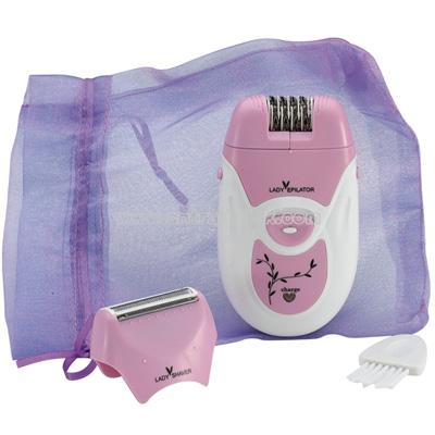 Rechargeable lady'' epilator/shaver set With epilator and shaver function Charge time:12 hours Accessory: charger/brush/bag Washable function