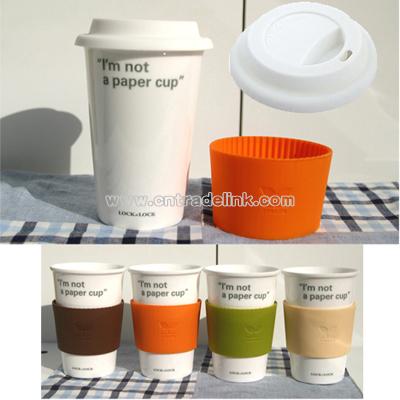 The "Eco Cup" Porcelain Cup looks just like an average paper cup -- but it's anything but. Made of smooth white porcelain, this ecologically friendly coffee cup includes an attachable lid, which helps keep beverages hot or cold for longer. The lid can withstand temperatures over 400 degrees Fahrenheit, and helps prevent messy spills. The "Eco Cup" also comes with a silicone sleeve, which slides around the cup and prevents burns. Just like at your favorite coffee shop, the sleeve lets you pick up your extra hot beverage safely and comfortably. Measuring 95mm in diameter and 135mm tall, this porcelain coffee cup holds 16 oz. of your favorite drink, and prevents excessive waste of paper cups to better protect our environment. Microwave and dishwasher safe for convenience. Material: Cup Body: lead-free paint ceramic / white (enamel-ray), cover: non-toxic silicone / white (silica gel for temperature: -40 ℃ ~ 200 ℃) thermal cup sets: non-toxic silicone (silicone applicable temperature: -40 ℃ ~ 200 ℃)