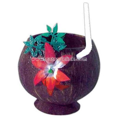 Coconut cup, 10 oz., with straw. Size: 10 oz